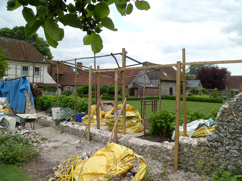 Rebuild as existing on a like-for-like basis using existing bricks and matching handmade bricks all laid using lime mortars