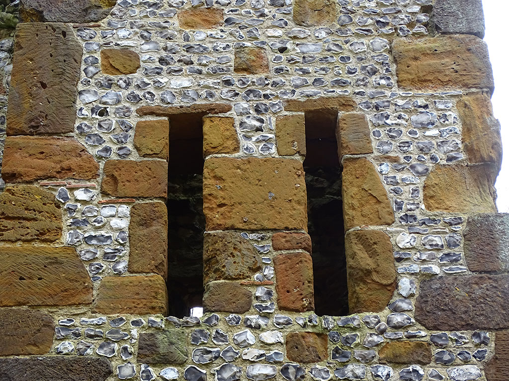 Localised decay/ spalling of sandstone and flint infill.